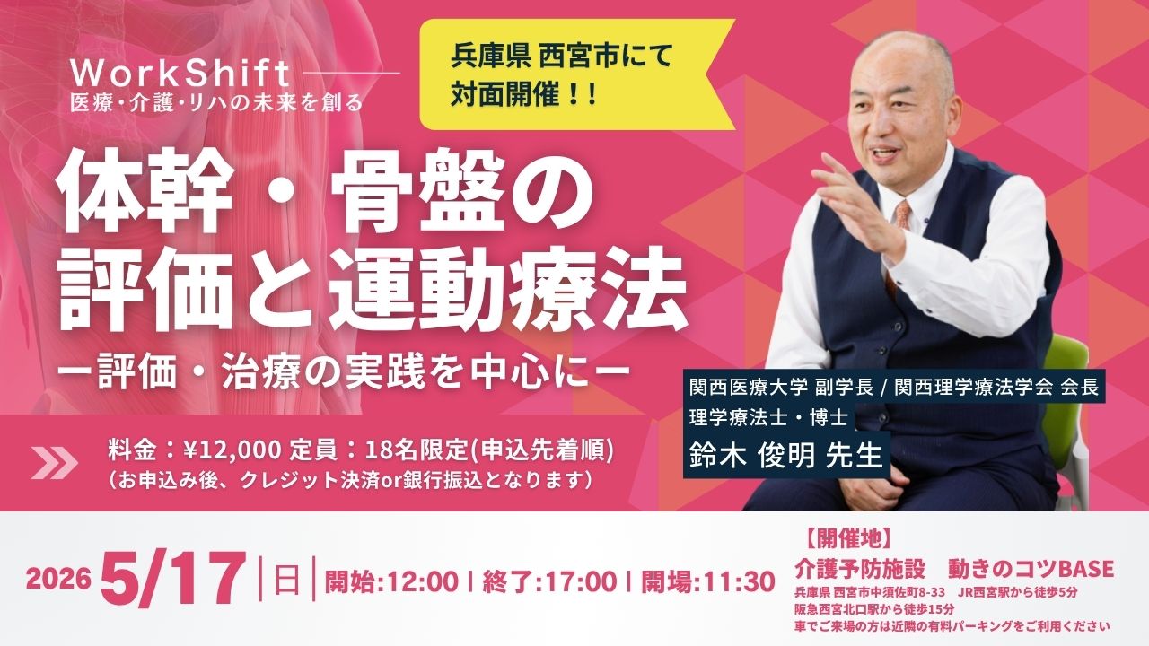 2026年5月17日(日)実技セミナー【鈴木俊明先生】体幹・骨盤の評価と運動療法 ― 評価・治療の実践を中心に ―