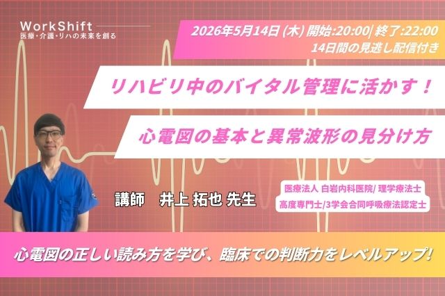 2026年5月14日(木)リハビリ中のバイタル管理に活かす!心電図の基本と異常波形の見分け方(14日間の見逃し配信付き)