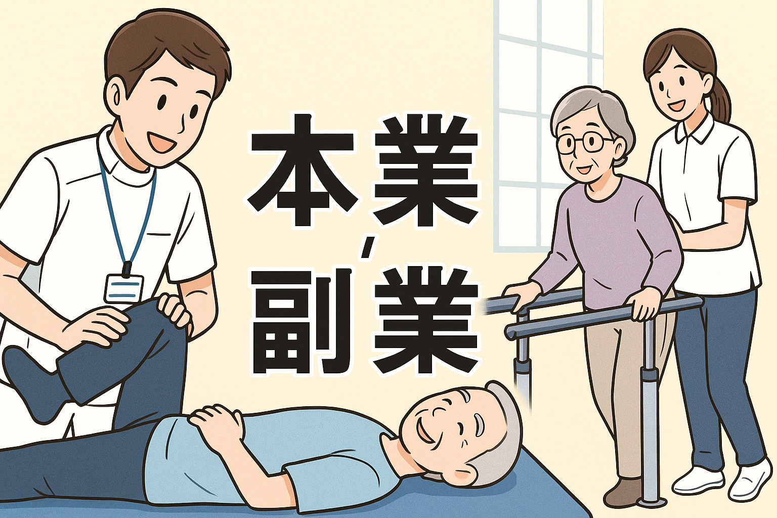 たとえば、回復期リハビリテーション病棟に勤務しているリハビリ職種が、訪問リハビリテーションで非常勤として働くとする。