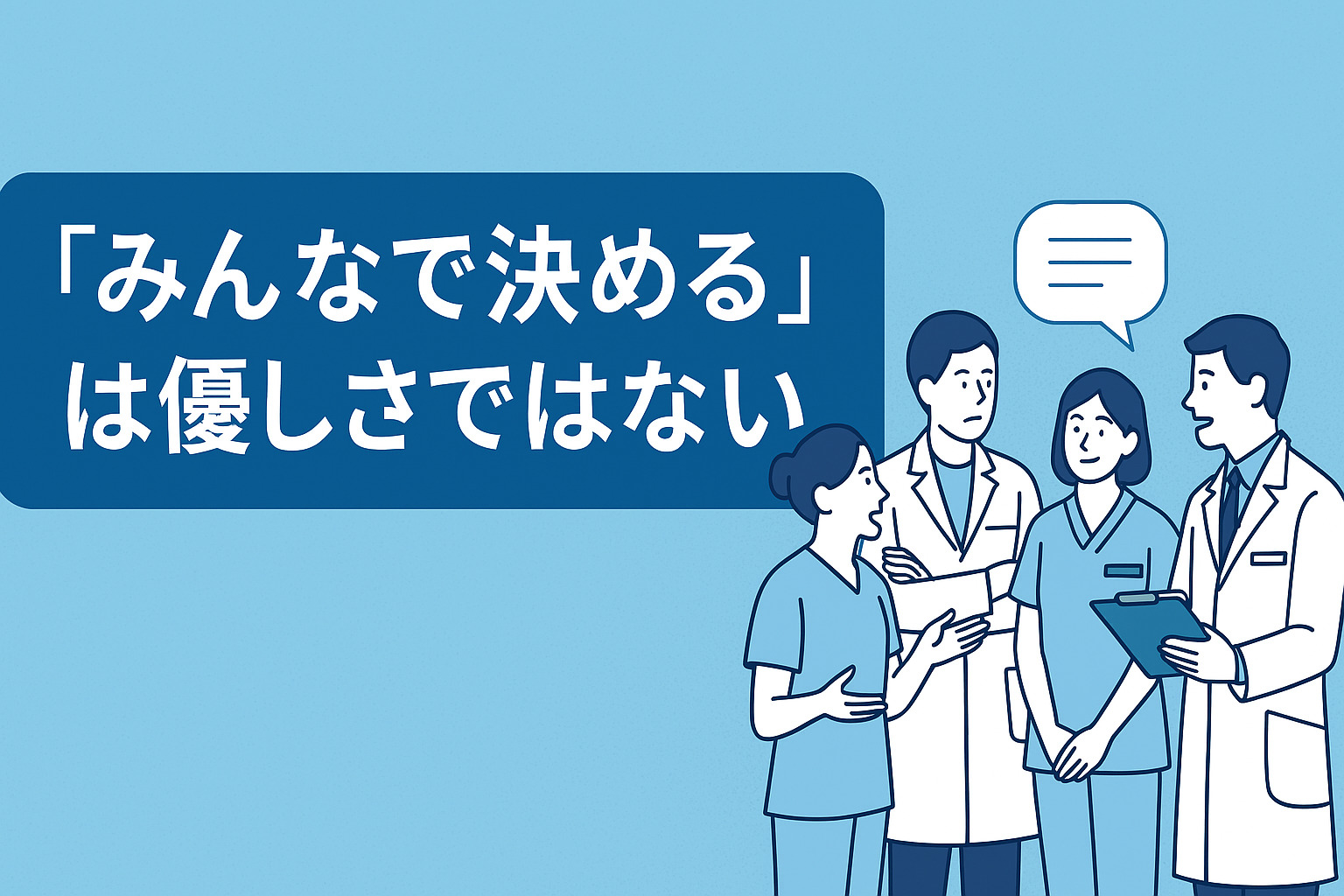 こうした理想を掲げ、「合議制(コンセンサス方式)」を取り入れる医療機関や介護事業所は多い。