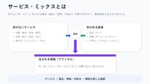 形のないサービスと、形のある製品・情報・仕組みを組み合わせて価値を生み出すことを指す(図1)。
