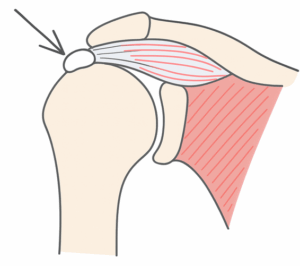 このような場合、積極的に可動域練習を行うと肩峰下周囲の組織の炎症をより進行させてしまう。