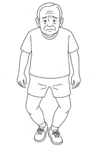 また、股関節外転筋群の弱化により骨盤が遊脚側に下方傾斜し、より膝が内側へ押し込まれるようなモーメントが生じる場合も多い。