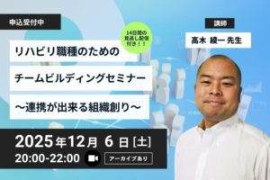 2025年12月6日に「リハビリ職種のためのチームビルディングセミナー〜連携が出来る組織創り〜」をオンラインで開催しました。