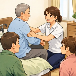 利用者本人の機能改善だけを追求しても、家族が疲弊していれば在宅生活は継続できない。訪問リハビリは利用者単体ではなく、家族単位で生活を支える支援である。