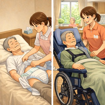移乗や体位変換の省力化、ポジショニング、環境調整、福祉用具の最適化によって、物理的負担を減らすことが最優先となる。