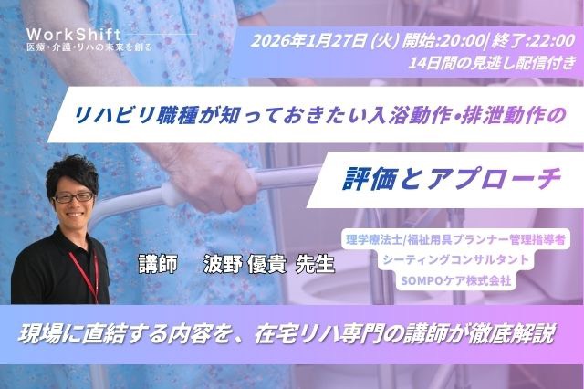 2026年1月27日(火)リハビリ職種が知っておきたい入浴動作・排泄動作の評価とアプローチ(14日間の見逃し配信付き)
