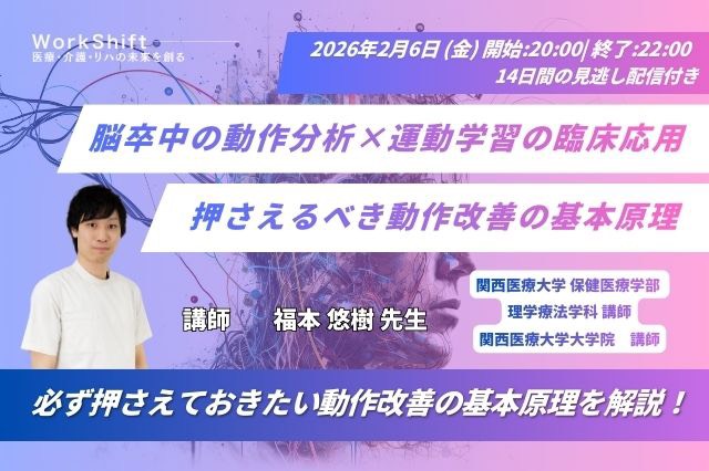 2026年2月6日(金)脳卒中の動作分析×運動学習の臨床応用:押さえるべき動作改善の基本原理(14日間の見逃し配信付き)