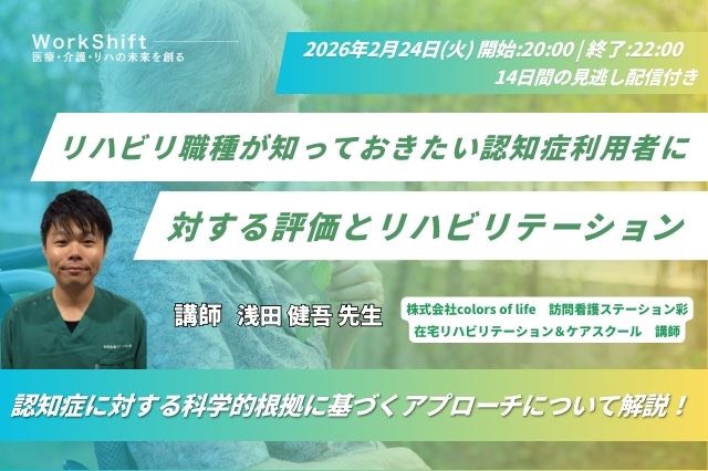 2026年2月24日(火)リハビリ職種が知っておきたい認知症利用者に対する評価とリハビリテーション(14日間の見逃し配信付き)