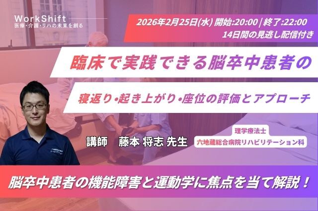 2026年2月25日(水)臨床で実践できる脳卒中患者の寝返り・起き上がり・座位の評価とアプローチ(14日間見逃し配信付)