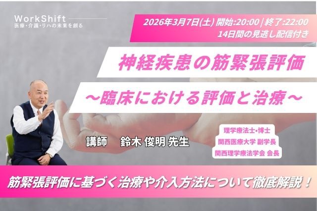 2026年3月7日(土)【講師 鈴木俊明先生】神経疾患の筋緊張評価〜臨床における評価と治療〜(14日日間の見逃し配信付き)