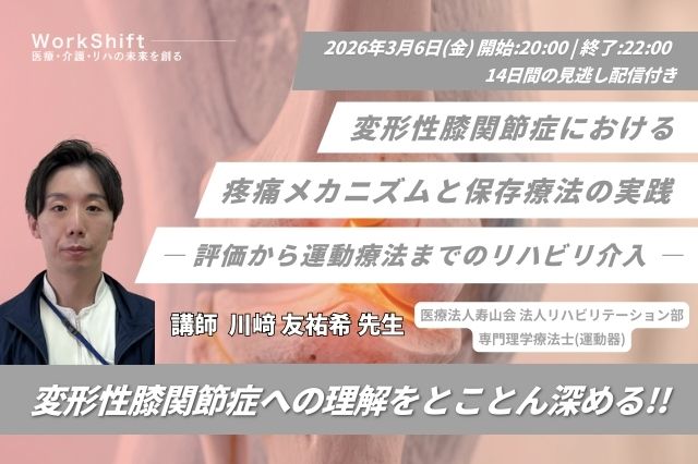 2026年3月6日(金)変形性膝関節症における疼痛メカニズムと保存療法の実践 ― 評価から運動療法までのリハビリ介入 ―(14日間の見逃し配信付き)
