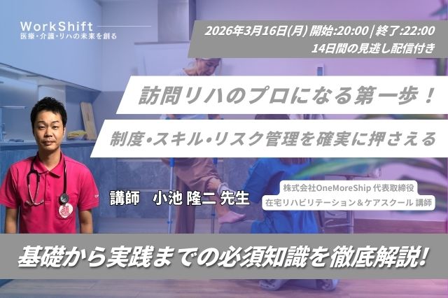 2026年3月16日(月)訪問リハのプロになる第一歩! 制度・スキル・リスク管理を確実に押さえる(14日間の見逃し配信付き)