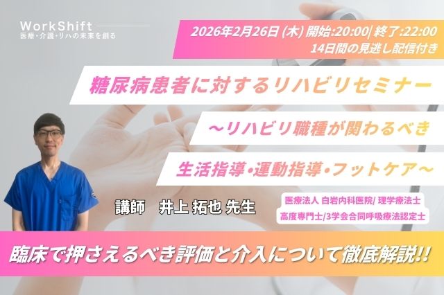 2026年2月26日(木)糖尿病患者に対するリハビリセミナー〜リハビリ職種が関わるべき生活指導・運動指導・フットケア〜(14日間の見逃し配信付き)