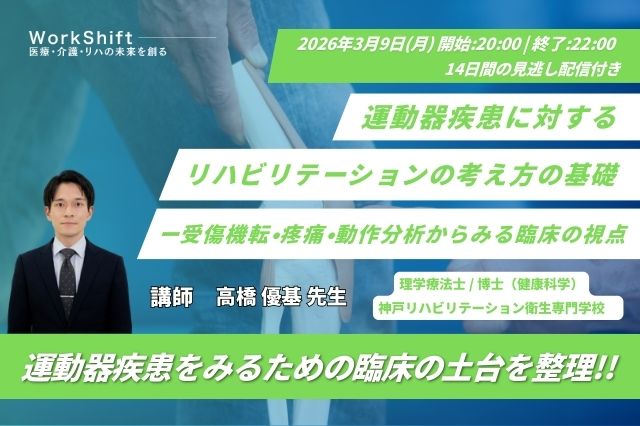 2026年3月9日(月)運動器疾患に対するリハビリテーションの考え方の基礎 ─ 受傷機転・疼痛・動作分析からみる臨床の視点(14日間の見逃し配信付き)