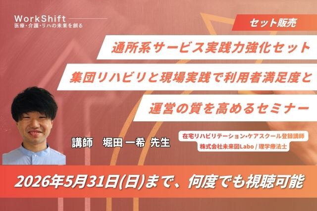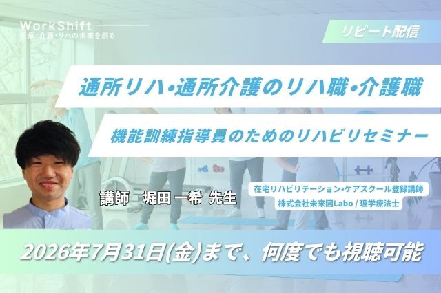 リピート配信 通所リハ・通所介護のリハ職・介護職・機能訓練指導員のためのリハビリセミナー(119分)(2026年7月31日まで視聴可能)