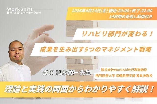 2026年4月24日(金)リハビリ部門が変わる!成果を生み出す5つのマネジメント戦略(14日間の見逃し配信付き)