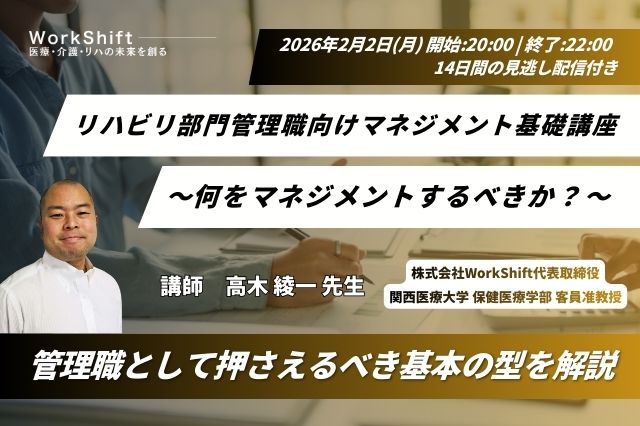 2026年2月2日(月)リハビリ部門管理職向けマネジメント基礎講座 〜何をマネジメントするべきか?〜(14日間の見逃し配信付)